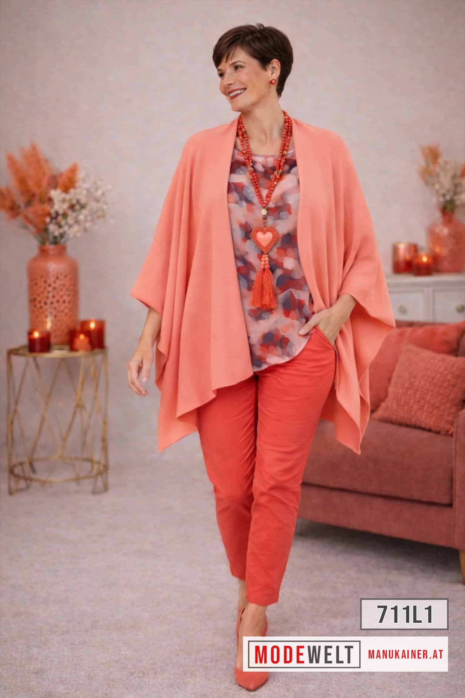 Eleganz trifft auf Komfort – der Westenponcho in zartem Lachs ist Ihr neues Must-Have! ✨