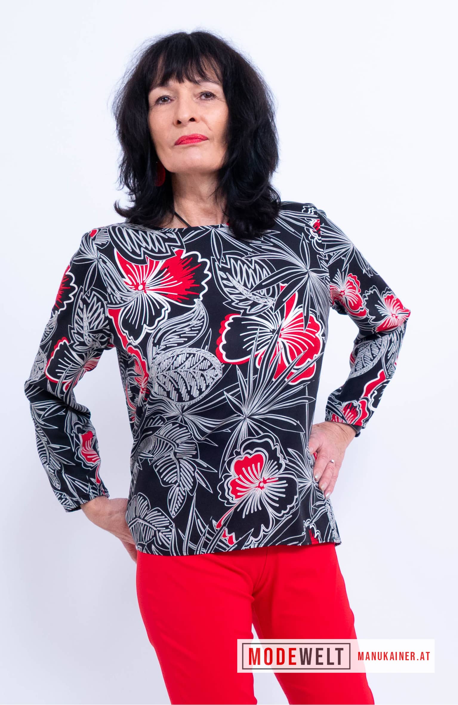 Dieses Blusenshirt überzeugt durch seine klare Linie und den modernen, geraden Schnitt. Der ausdrucksstarke Print verleiht dem Modell Charakter, ohne aufdringlich zu wirken, und macht es zu einem stilvollen Begleiter für viele Gelegenheiten. Die figurumspielende Passform sorgt für ein angenehmes Tragegefühl und eine schmeichelhafte Silhouette. Ob elegant kombiniert oder lässig gestylt dieses Blusenshirt ist ein zuverlässiger Allrounder für Frauen mit Sinn für zeitlose Mode und souveränen Stil. // Länge in cm ca.: 66, Material: 93% Viskose, 7% Elastan, Farbe: Schwarz|Rot | // Kategorien: Shirts,Blusen,,LadiesKollektion,xxl,Graustyles,BlackStyles,x14x,x49x, // Artikelnummer: 4205.