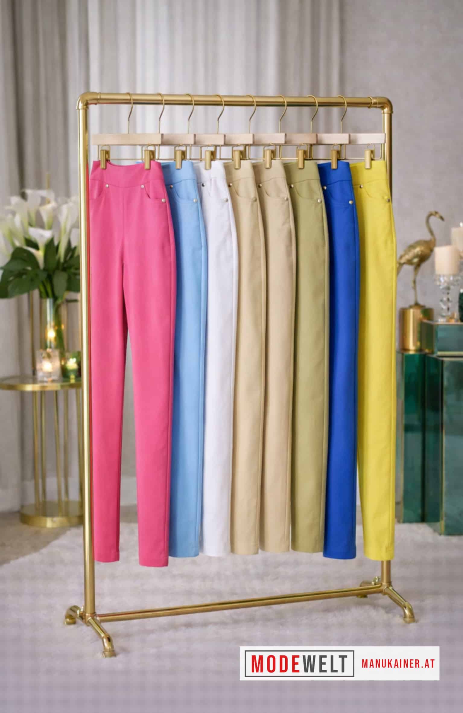 Die Designhose Green Fun vereint Komfort und Stil in einer schicken Schlupfhose, erhältlich in den Größen 36 bis 48. Diese leicht figurformende Hose präsentiert sich in einem edlen, schmalen Design, das Ihre Silhouette gekonnt in Szene setzt. Dank der hohen Elastizität ist sie extrem bequem und passt sich perfekt Ihrem Körper an.