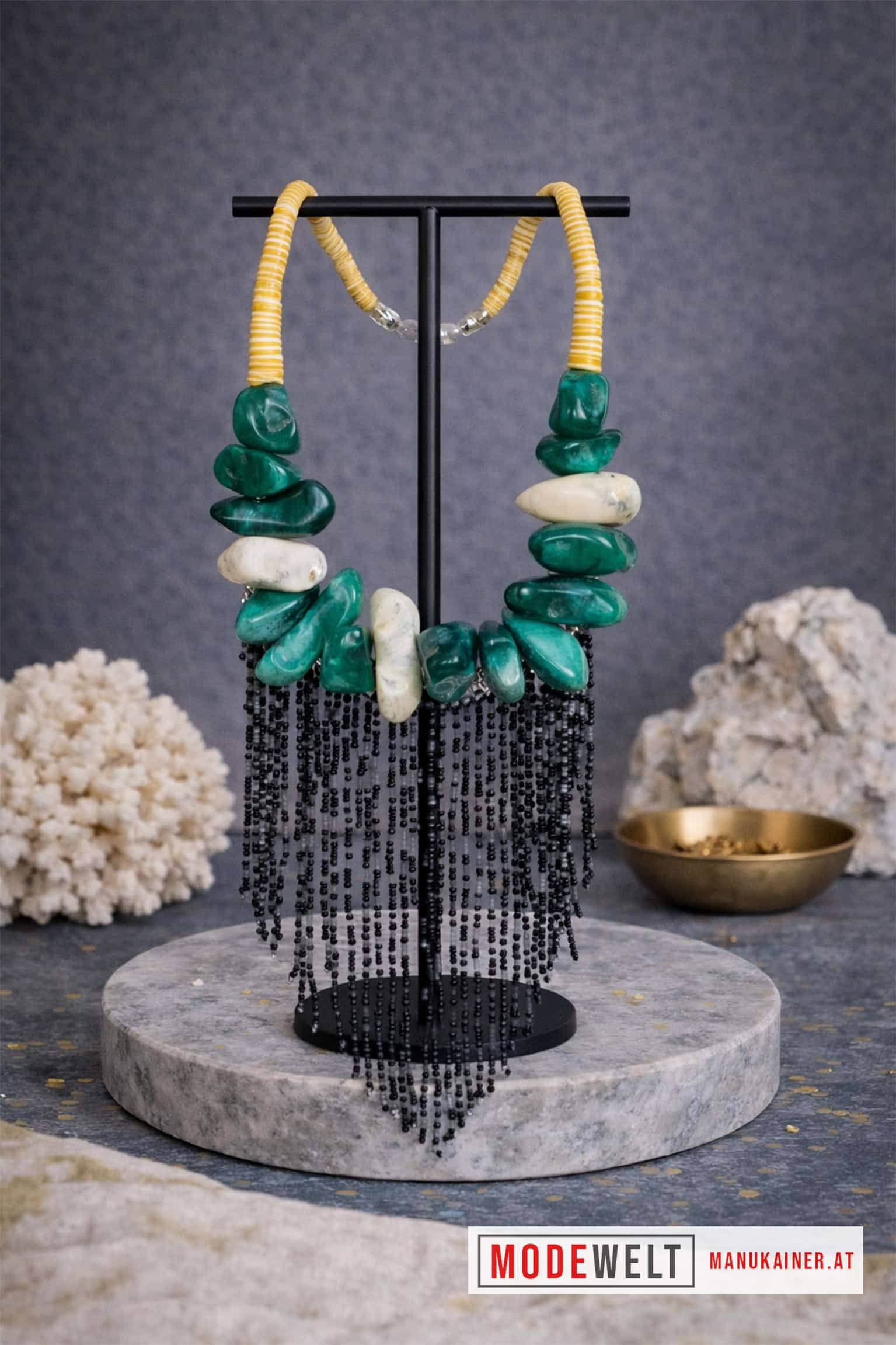 ✨ Sehr extravagante Steinkette mit schwarz-weißem Perlenlook.