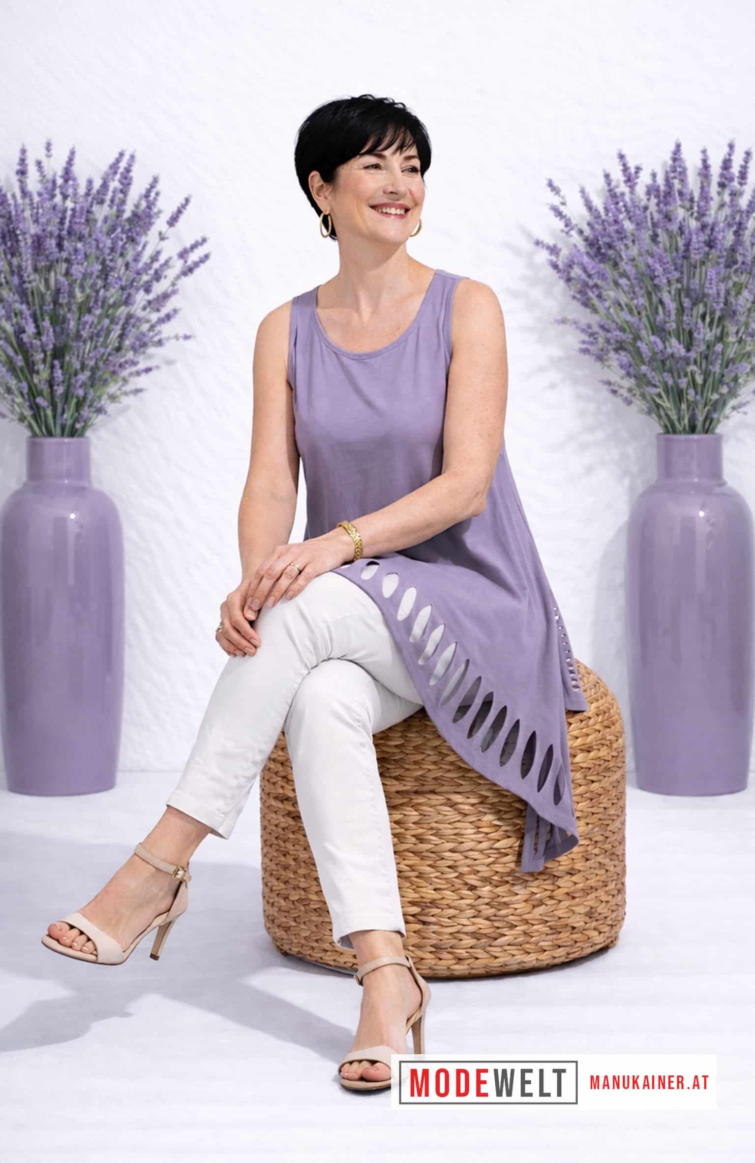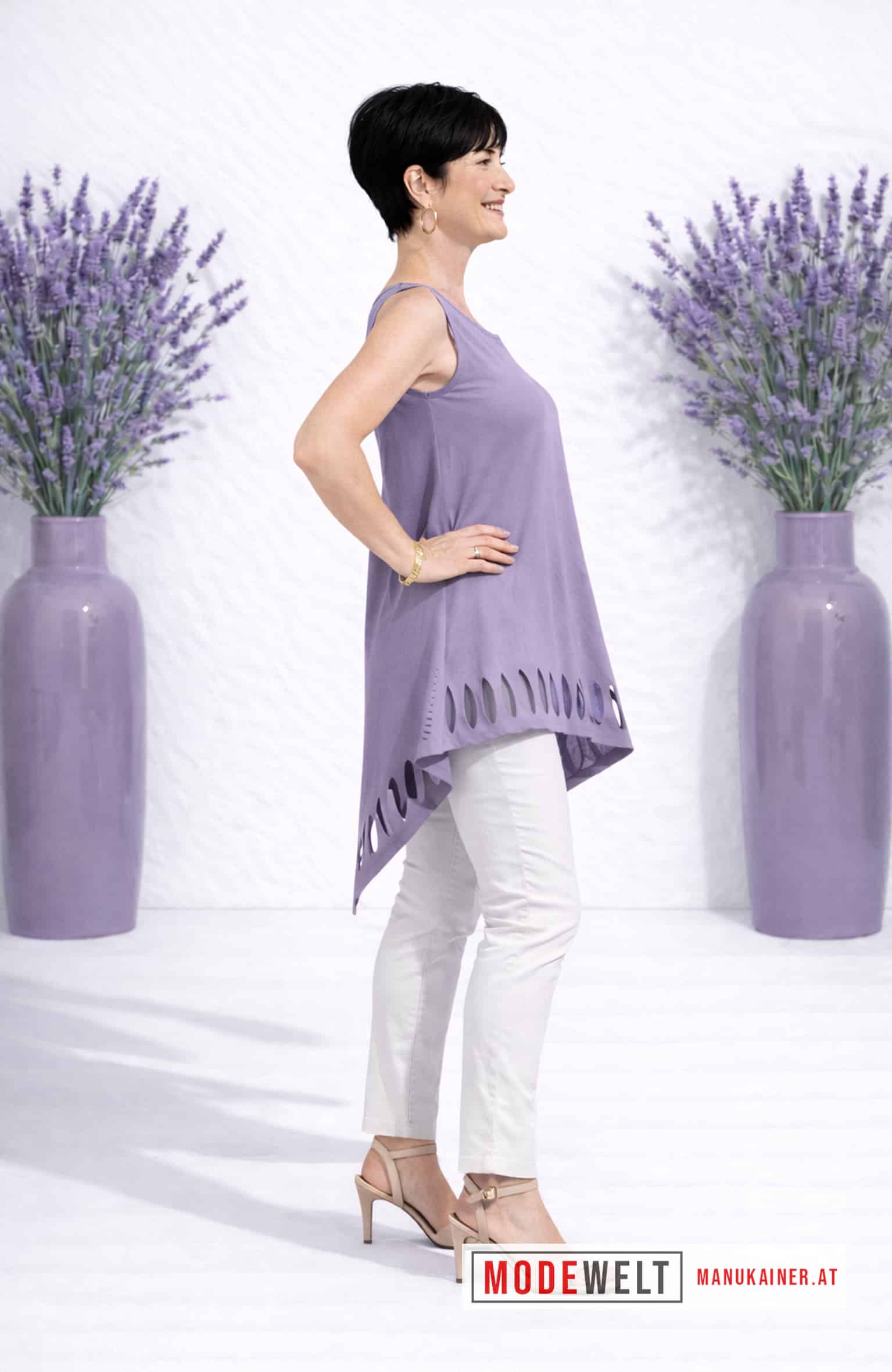 Das DesignLongshirt Trendy Flieder ist ein echter Hingucker mit seinem extravaganten, ärmellosen Design und der asymmetrischen Form. Die zipfenartige Ausstellung und die coolen Cutouts am Saum verleihen diesem Teil einen modernen Touch. Kombinieren Sie es sowohl mit lässigen als auch mit schicken Outfits und setzen Sie ein modisches Statement. Ein Must-have für alle, die Individualität und Extravaganz schätzen.