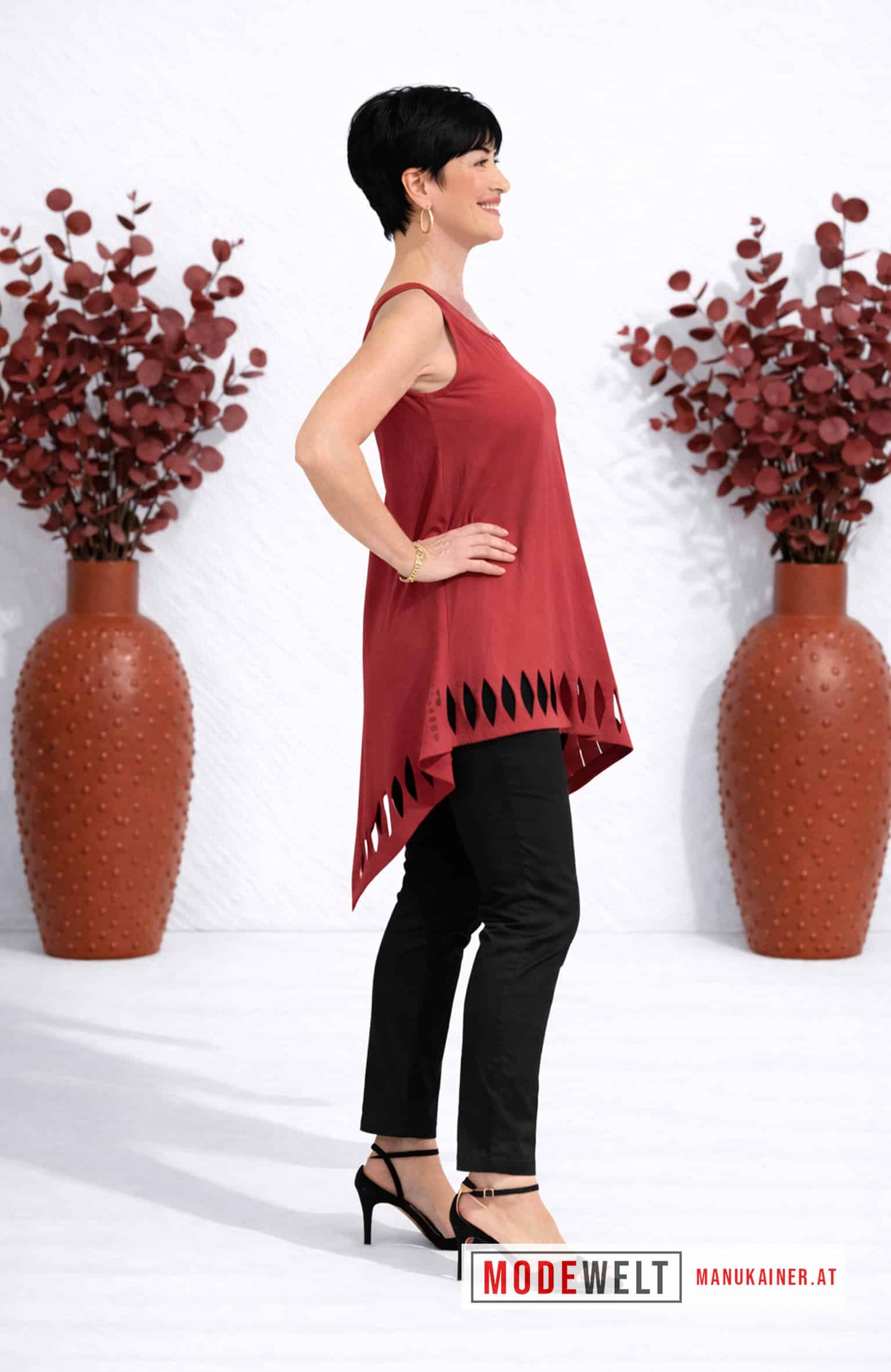 Entdecken Sie dieses extravagante und ärmellose Longshirt in einer asymmetrischen Form, das Ihren Look auf ein neues Level hebt. Die zipfenartige Ausstellung und die extracoolen Cutouts am Saum sorgen für einen außergewöhnlichen und modernen Look. Dieses kombistarke und ausgefallene Styleteilchen lässt sich sowohl zu lässigen als auch zu schicken Outfits perfekt ergänzen und verleiht Ihrem Look das gewisse Etwas. Das DesignLongshirt Trendy ist ein Traum für alle modebewussten Frauen, die Wert auf Individualität und Extravaganz legen. Setzen Sie ein modisches Statement mit diesem atemberaubenden Styleteilchen und lassen Sie sich von den neuesten Trends inspirieren!