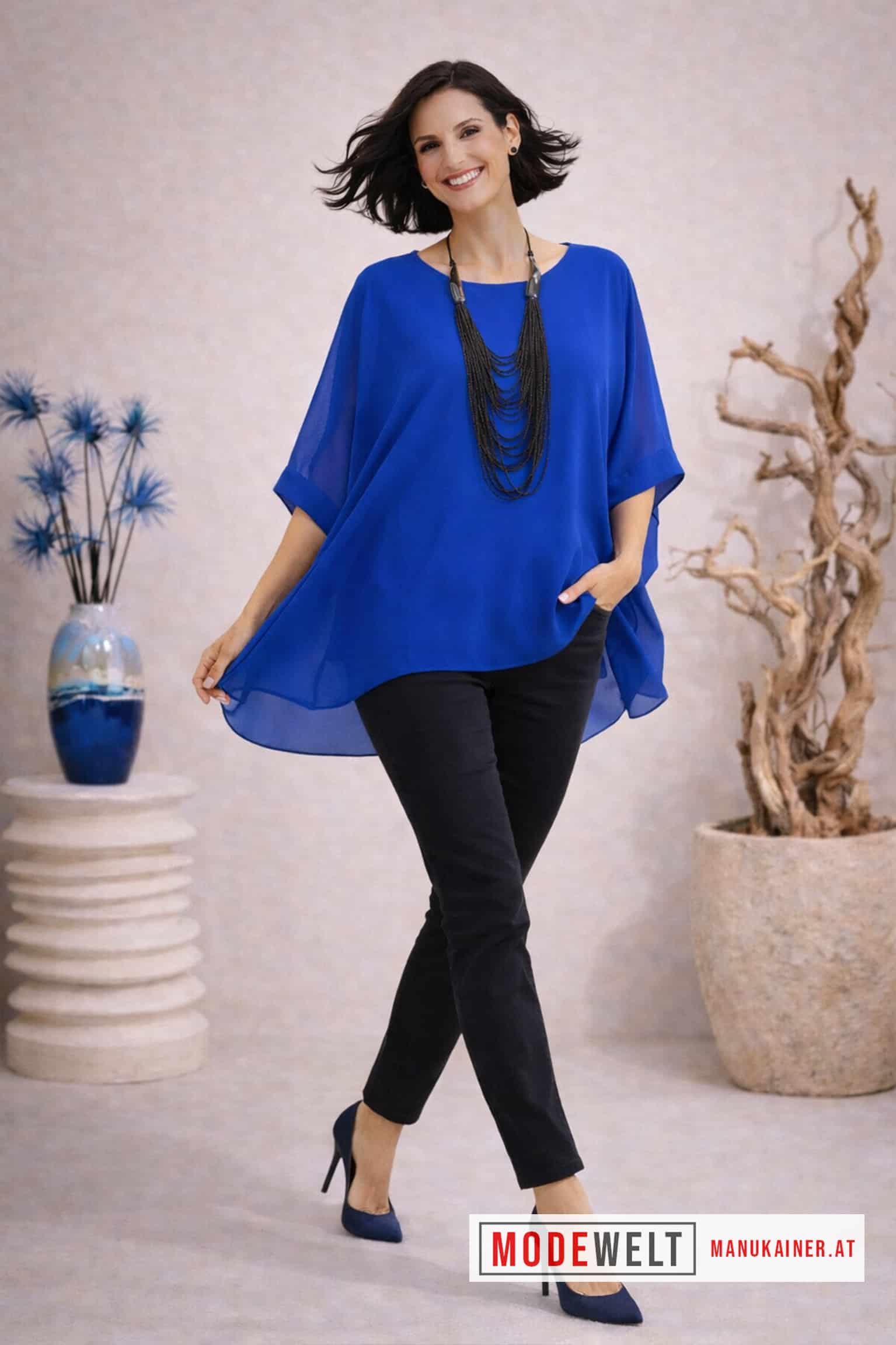 Erleben Sie die Leichtigkeit der FledermausBluse Lady Blue – ein Must-have für jede modebewusste Frau! ✨