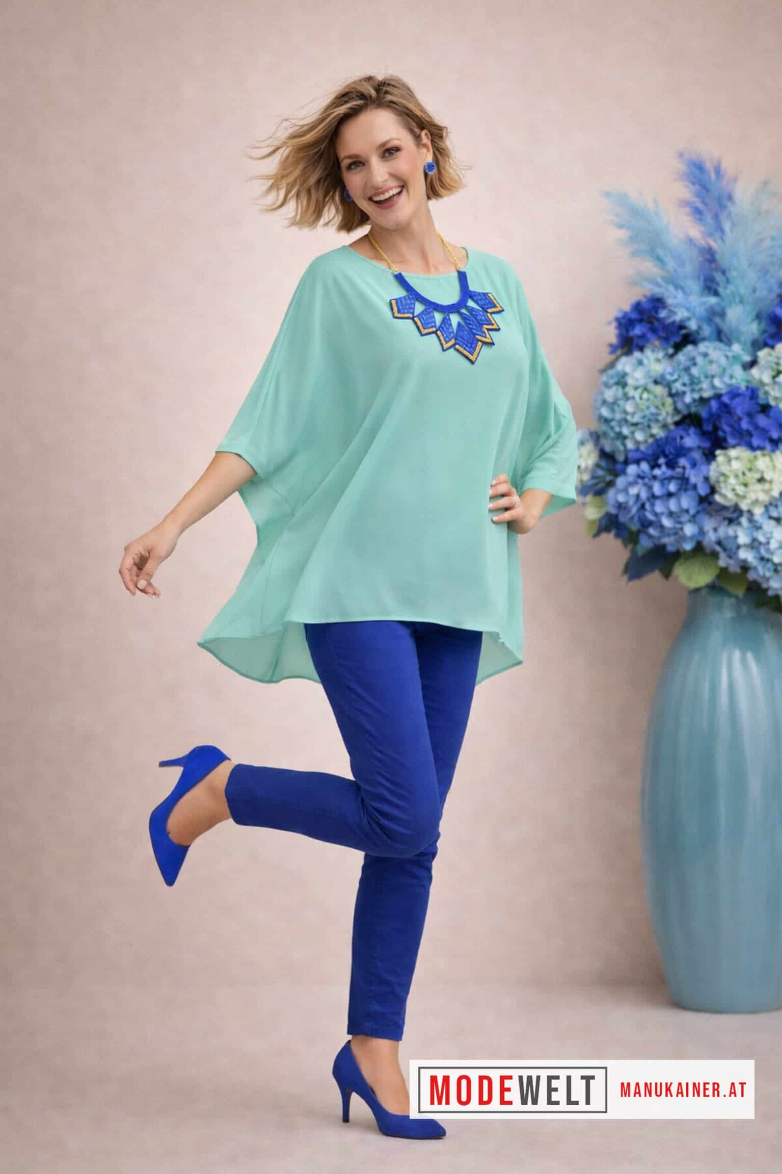 Die FledermausBluse Lady Mint ist ein absolutes Must-Have für Ihre Sommergarderobe. Mit ihrem luftigen Fall und den eleganten Fledermausärmeln bietet sie nicht nur Komfort, sondern auch einen stilvollen Look. Kombinieren Sie sie mit Jeans oder einem Rock für einen perfekten Auftritt!