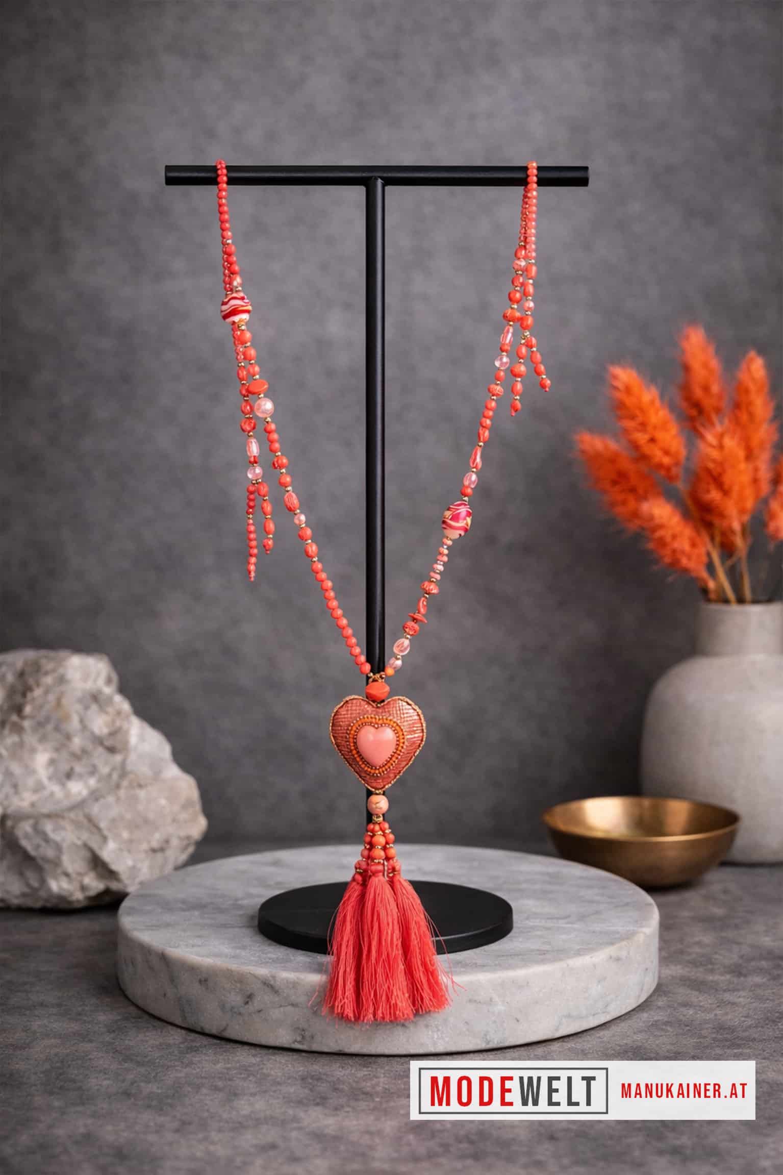 ✨ Elegante Longkette in leuchtendem Lachsrot.