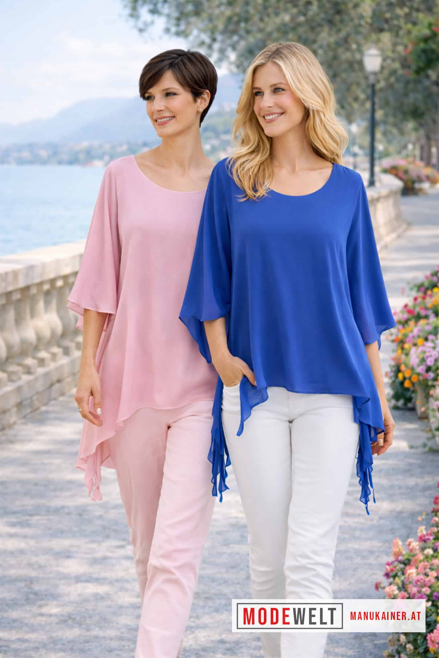 Die SEIDENFEELBLUSE SUMMER-DREAM BLUE ROYAL verzaubert mit ihrer fließenden Leichtigkeit und luxuriösen Ausstrahlung. Das zarte Material legt sich sanft auf die Haut, während die zipfig fallenden Wellenbänder und die luftigen Trapezärmel bei jeder Bewegung elegant mitschwingen. Das integrierte Unterfutter sorgt für Komfort und Sicherheit – ein stilvoller Begleiter für warme Tage und besondere Momente.