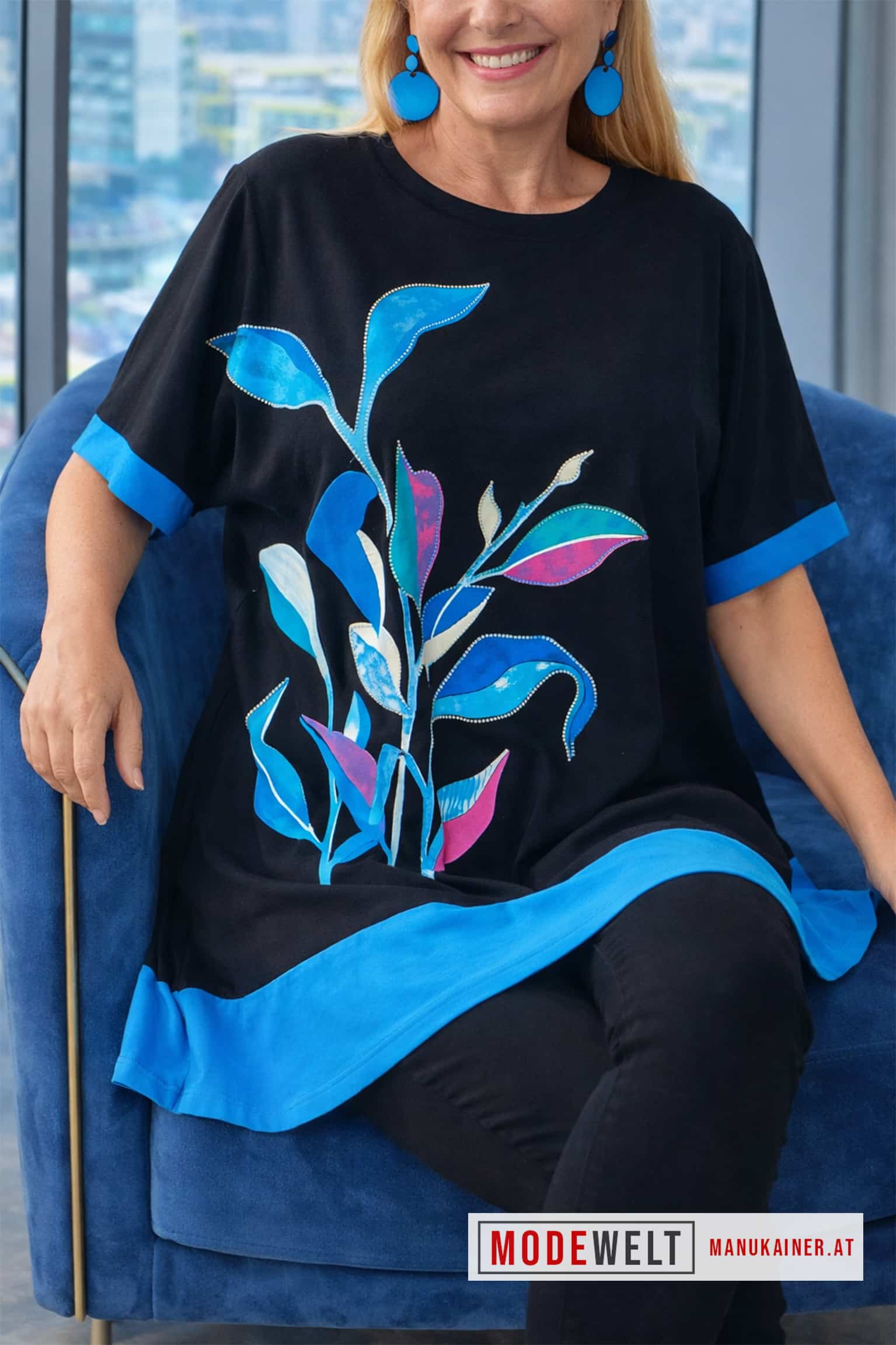 ✨ Die Tunika Blue Happiness ist ein echtes Statement-Piece für Frauen, die ihre Individualität mit Stil zeigen möchten.